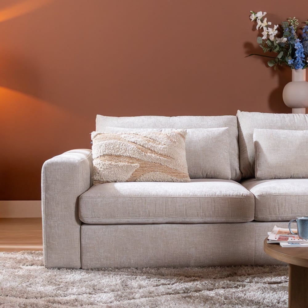 3-zitsbank Kyle is bekleed met Eddy chenille, een hoogwaardige stof van 100% polyester, waterafstotend en gecertificeerd volgens REACH en OEKO-TEX normen. Chenille staat bekend om de volle, zachte structuur en is extra comfortabel om op te zitten. De stof heeft een Martindale score van 60.000, wat betekent dat deze bank uitermate slijtvast is en geschikt voor intensief (dagelijks) gebruik. De bank is afgewerkt met een waterafstotende toplaag, dus vloeistoffen dringen niet direct door en zijn makkelijk te verwijderen. Let op: door de structuur van de chenille kan bij bepaalde lichtinval shading optreden, wat zorgt voor natuurlijke kleurvariaties. Het frame is degelijk uitgevoerd met nosagveren, houten platen, beuken- en grenenhout, waardoor de zitbanken een lange levensduur hebben en een stabiele basis bieden.