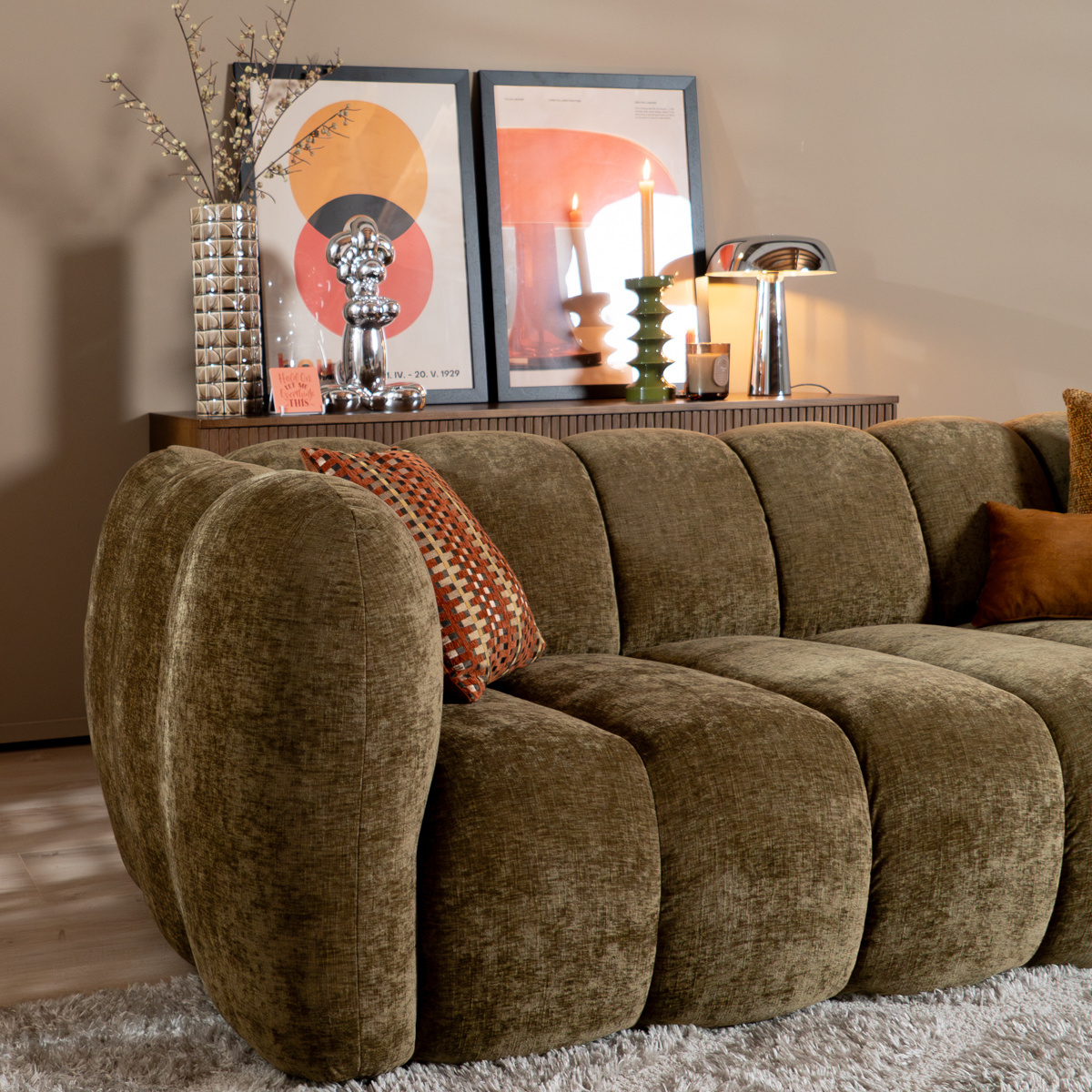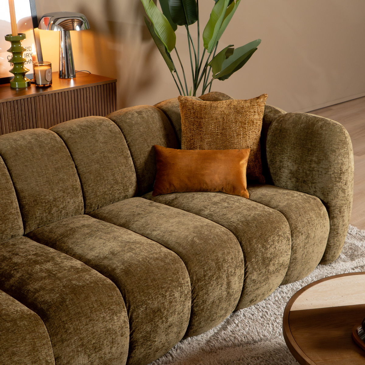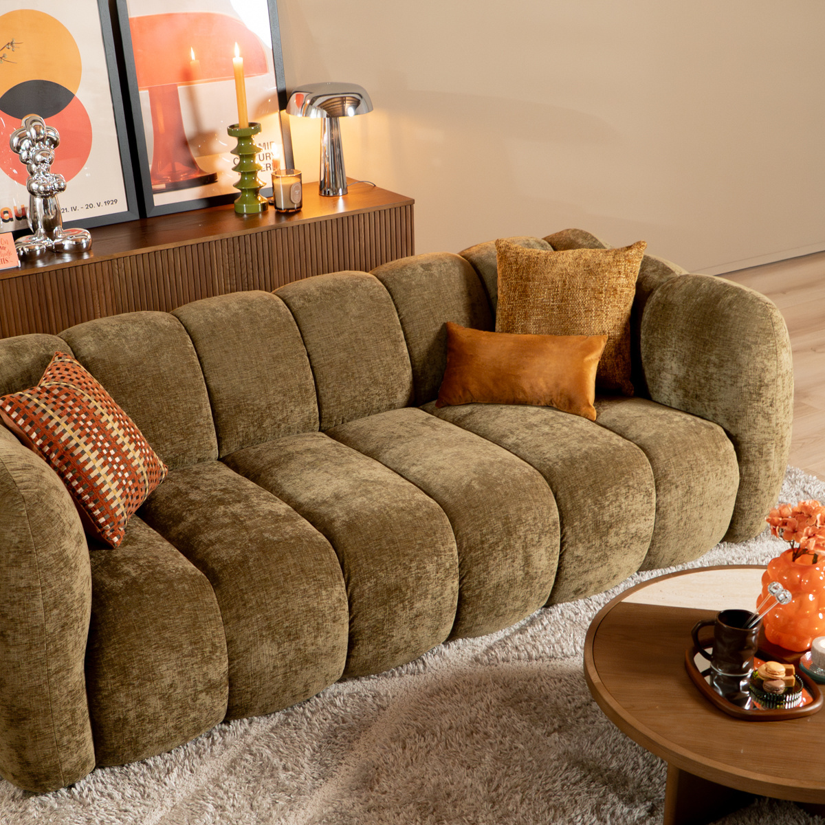 3-zitsbank Luca olijf groen chenille