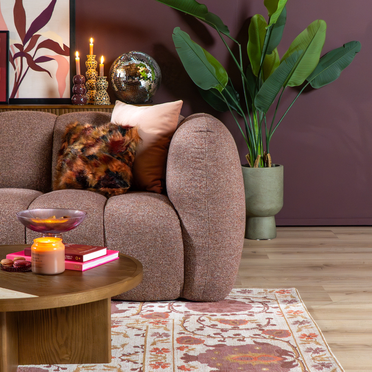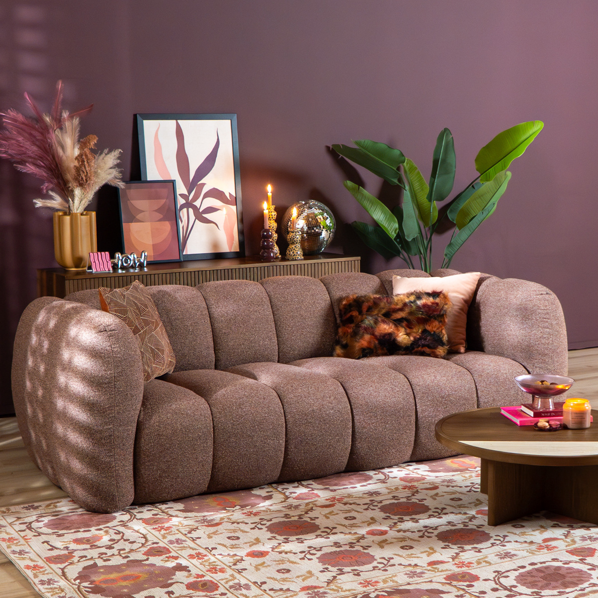 3-zitsbank Luca rood/roze bouclé