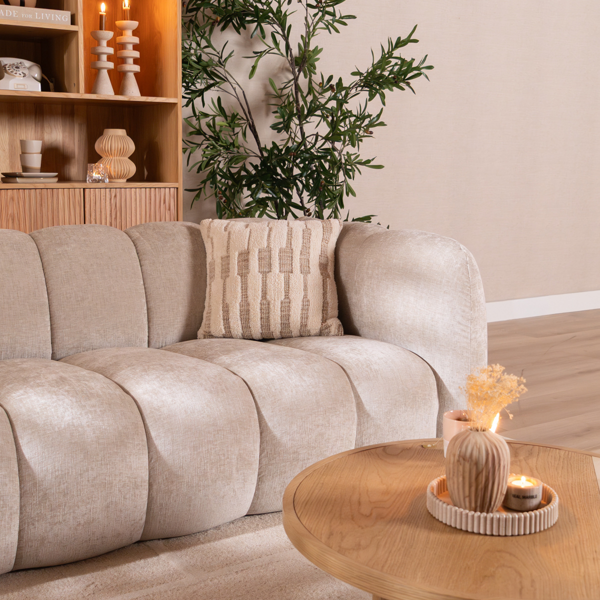 De Luca bank biedt optimaal zitcomfort dankzij een doordachte opbouw van hoogwaardige materialen. Het binnenwerk bestaat uit een stevig frame van spaanplaat en houten latten, gecombineerd met elastische banden en nosagveren. Deze zorgen voor langdurige ondersteuning en veerkracht. De zittingen zijn gevuld met verschillende typen HR-koudschuim, waardoor de bank haar vorm behoudt en comfortabel blijft, ook bij dagelijks gebruik. Het zitcomfort is stevig maar comfortabel, ideaal voor zowel korte zitmomenten als lange avonden ontspannen.