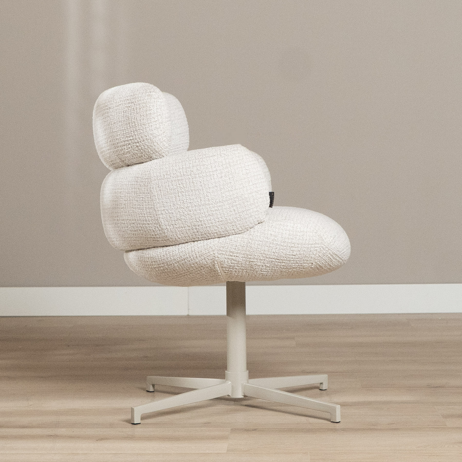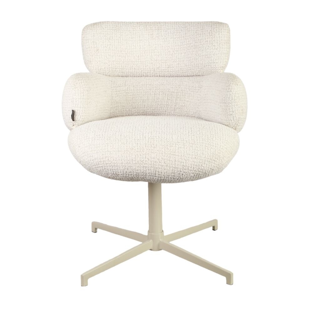 Stoel Coco is 180 graden draaibaar. De beklede zitting en rugleuning zorgen voor een verfijnde uitstraling terwijl de ronde vormen en zachte armleuningen extra ondersteuning bieden. Hierdoor is Coco ideaal voor lange vergaderingen waarbij comfort belangrijk is.