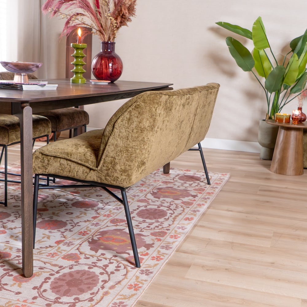 Eetkamerbank Momo chenille olijfgroen 220 cm