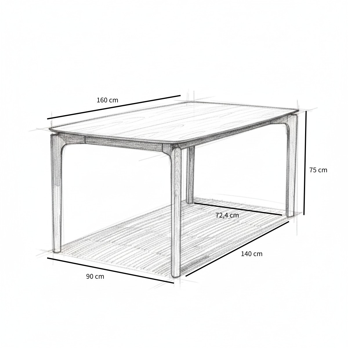 De hoogte tot aan de onderkant van het tafelblad is 73 cm en is geschikt voor 4 personen.