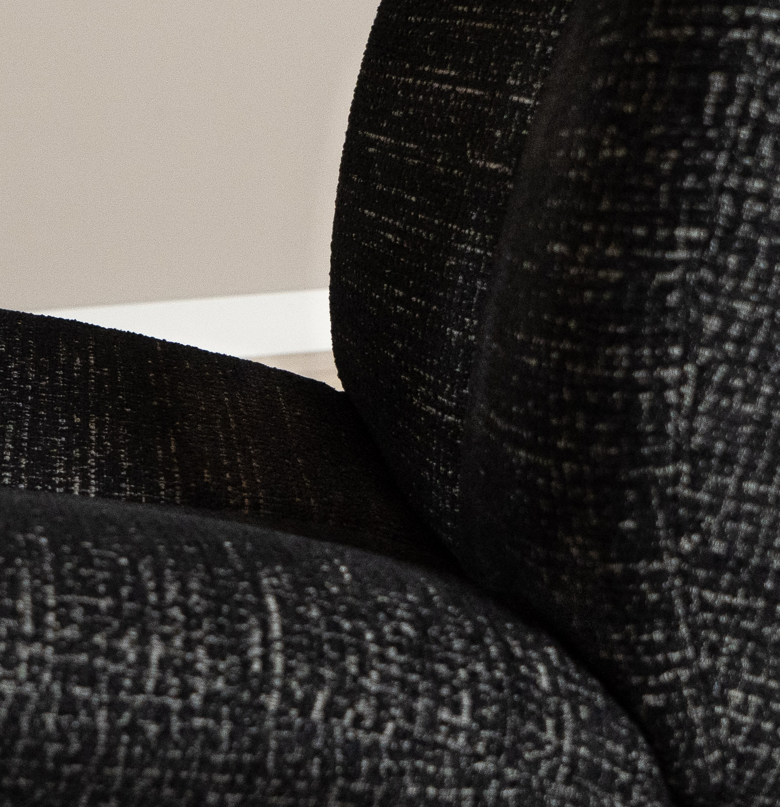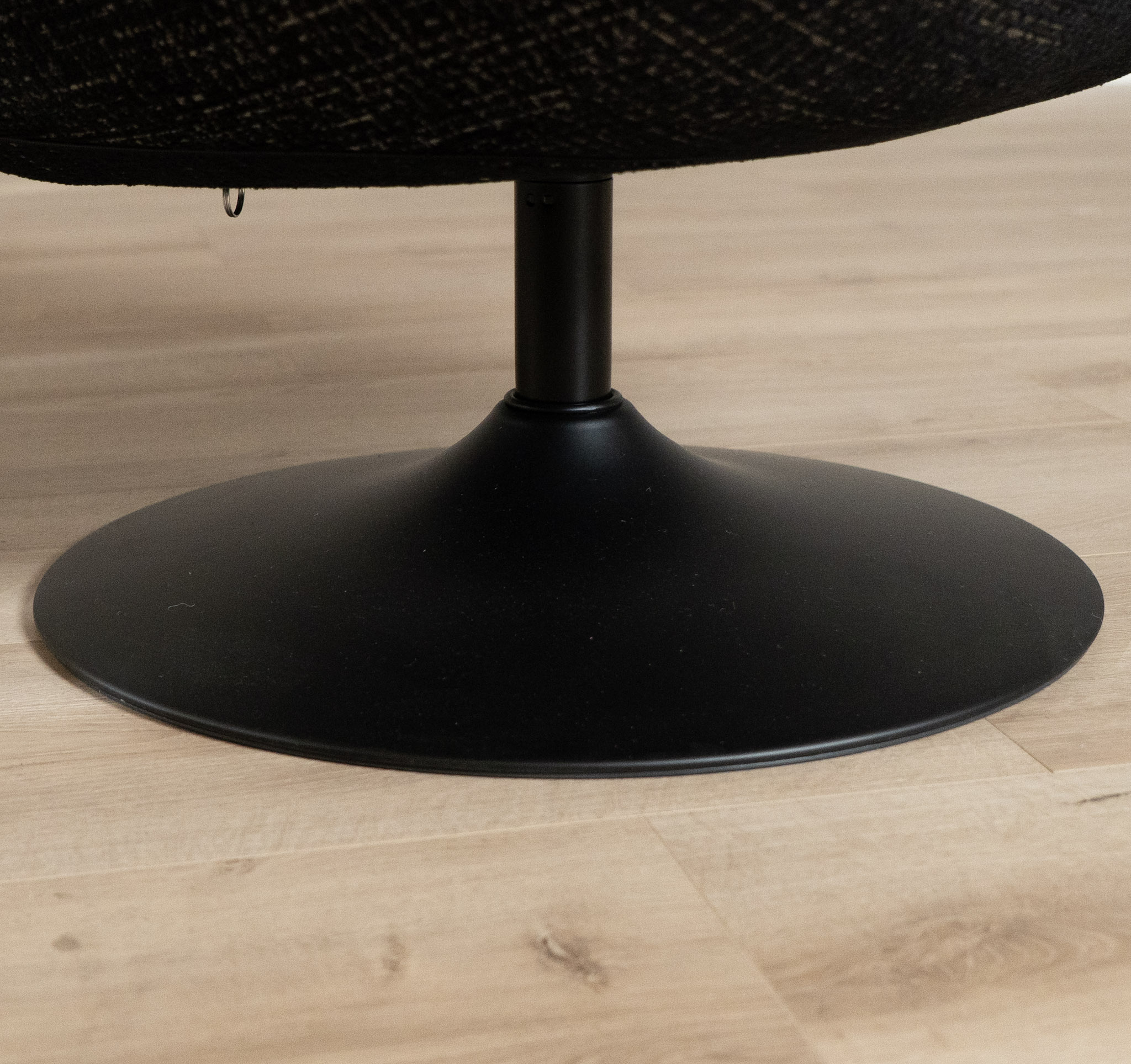 Het zwarte metalen onderstel is 180 graden draaibaar, waardoor gebruikers eenvoudig van richting kunnen veranderen zonder de fauteuil te verplaatsen. Dit maakt Moira bijzonder geschikt voor lobby’s, lounges, wachtruimtes en hotelkamers, waar flexibiliteit en comfort centraal staan.