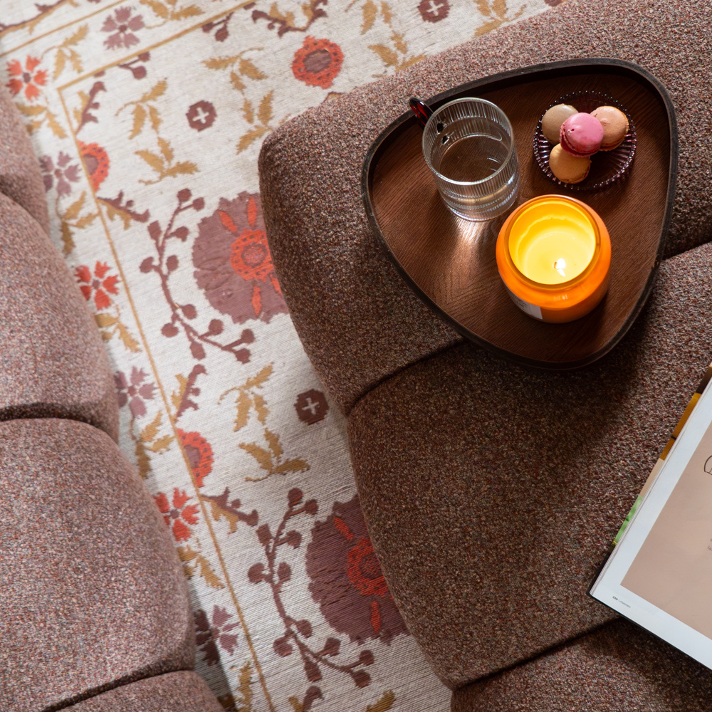 De hocker is bekleed met een stof van 100% polyester. Polyester is een sterk en duurzaam materiaal met een Martindale score van 38.000, wat betekent dat de stof uitstekend bestand is tegen slijtage. De bouclé stof, met zijn kenmerkende lusachtige structuur, geeft de bank een warme, moderne en luxe uitstraling die perfect aansluit bij hedendaagse woontrends.
