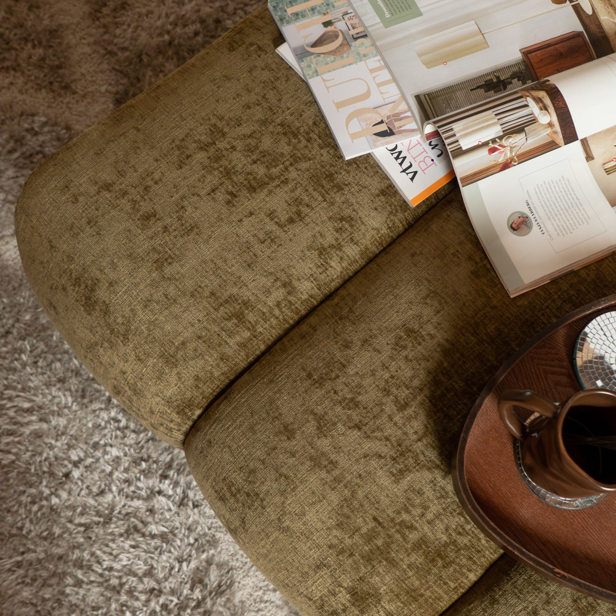 Hocker Luca chenille olijfgroen