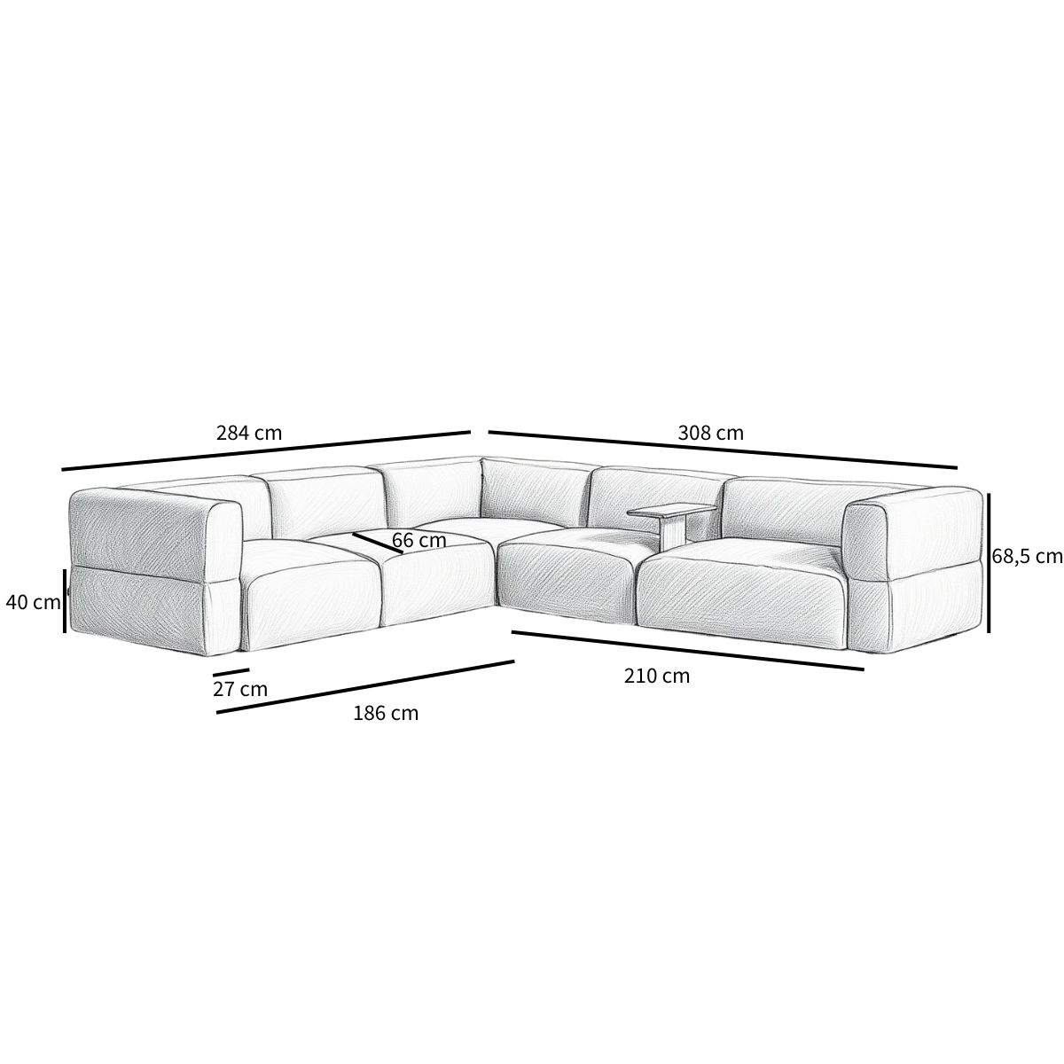 Hoekbank Karla een zeer comfortabele hoekige bank met afgeronde vormen in een taupe kleur. Ook wordt er een losse multifunctionele bijzettafel geleverd bij de Karla bank. Het is een licht eikenhouten tafeltje (56 x 40 x 45) die je kunt plaatsen tussen de zittingen.
