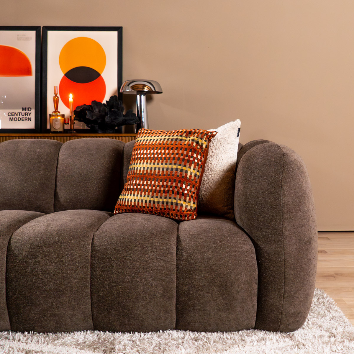 De Hoekbank Luca is met oog voor detail opgebouwd. De royale kussens in de zitting zijn gevuld met drie soorten schuim, waaronder HR-schuim. Oftewel High Resilience schuim, staat bekend om zijn blijvende veerkracht en hoge comfort. De kussens rusten op een stevige basis van spaanplaat, houten latten, elastische banden en een nosag-veer. Deze nosag-veer is een hoogwaardige metalen veer, die voor extra veerkracht en langdurige ondersteuning zorgt. Het resultaat? Een combinatie van zacht zitcomfort én goede ondersteuning. Let op: de bank is tot de grond gestoffeerd, wat zorgt voor een luxe uitstraling. De naden van de bekleding zijn licht voelbaar, wat de authentieke, handgemaakte look onderstreept. De stof heeft van nature een pilling-effect. U hoeft hier niets aan te doen; dit hoort bij de uitstraling van de bank.