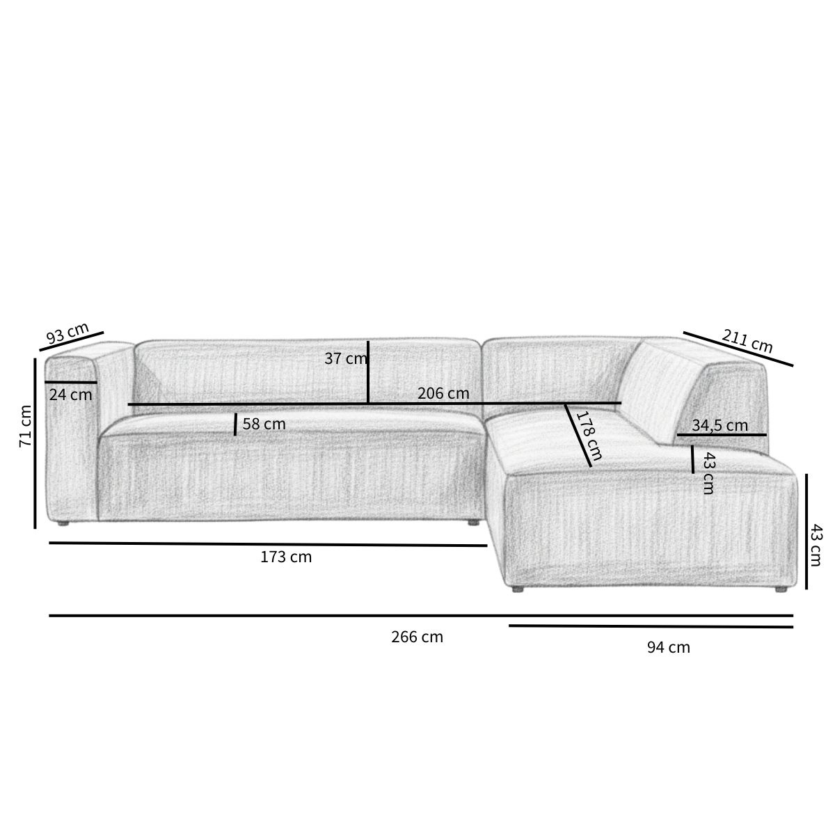 Hoekbank rechts Memphis off white polyester