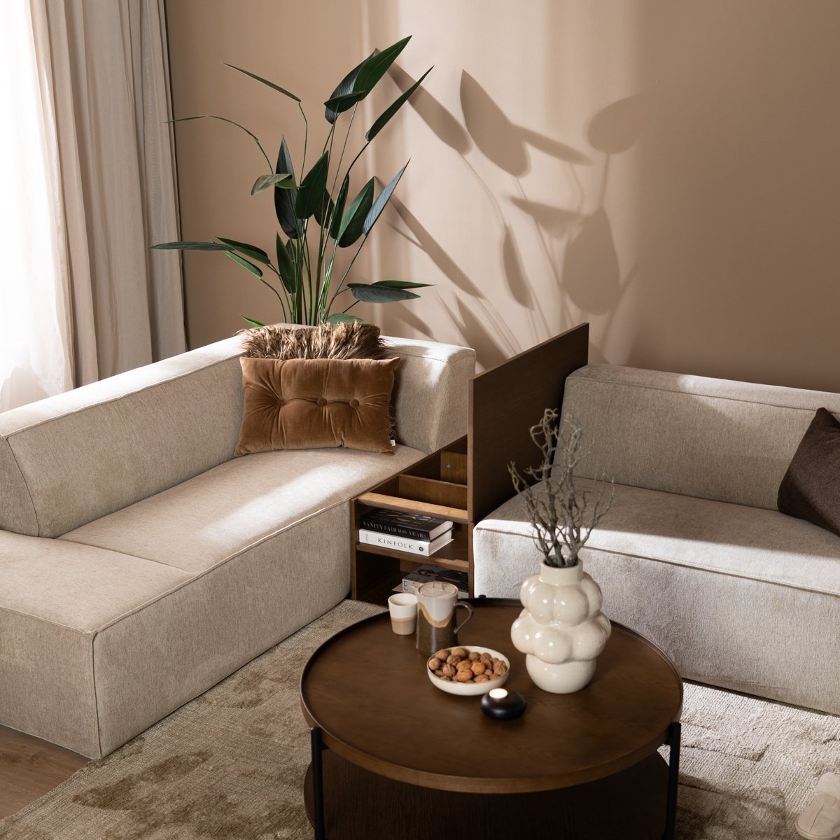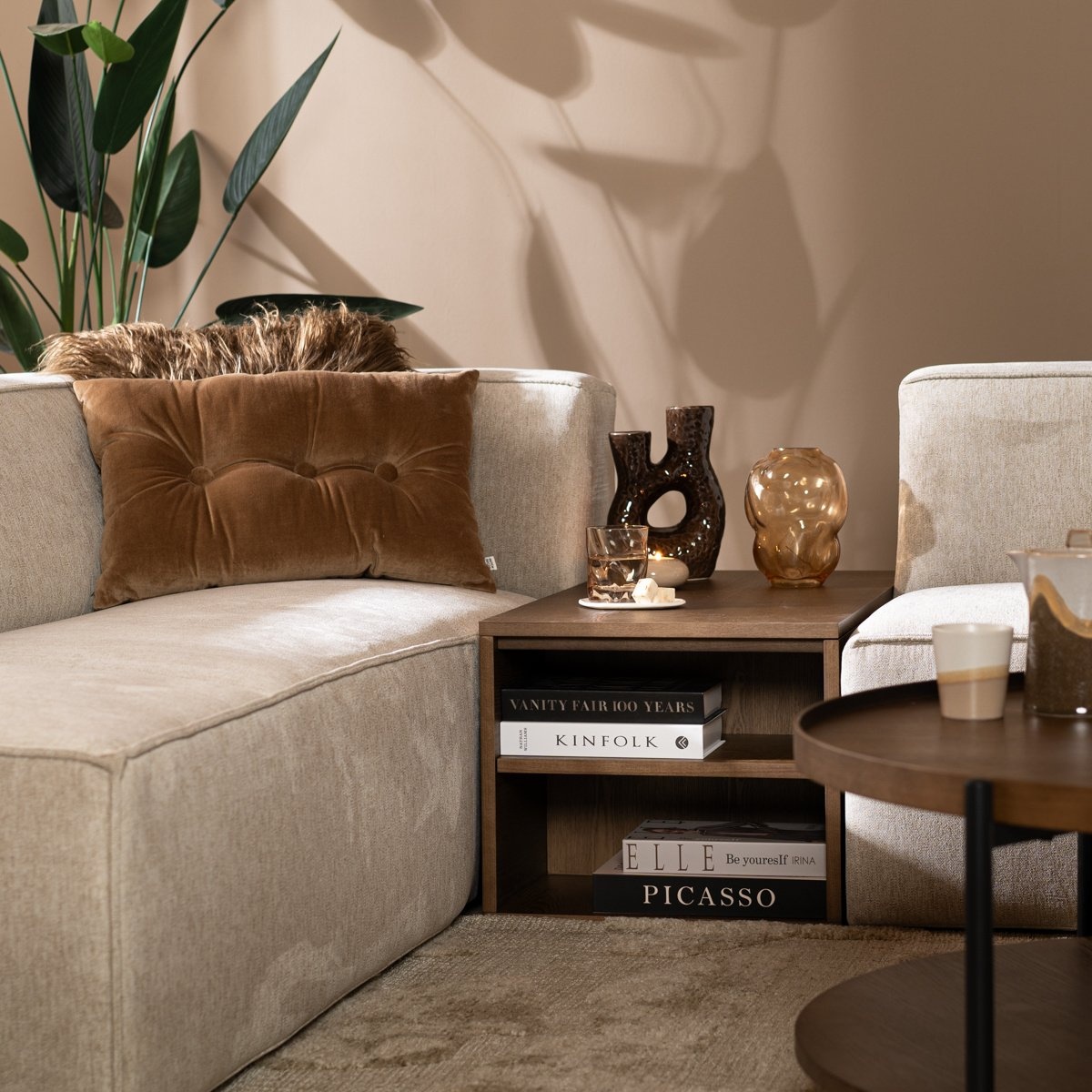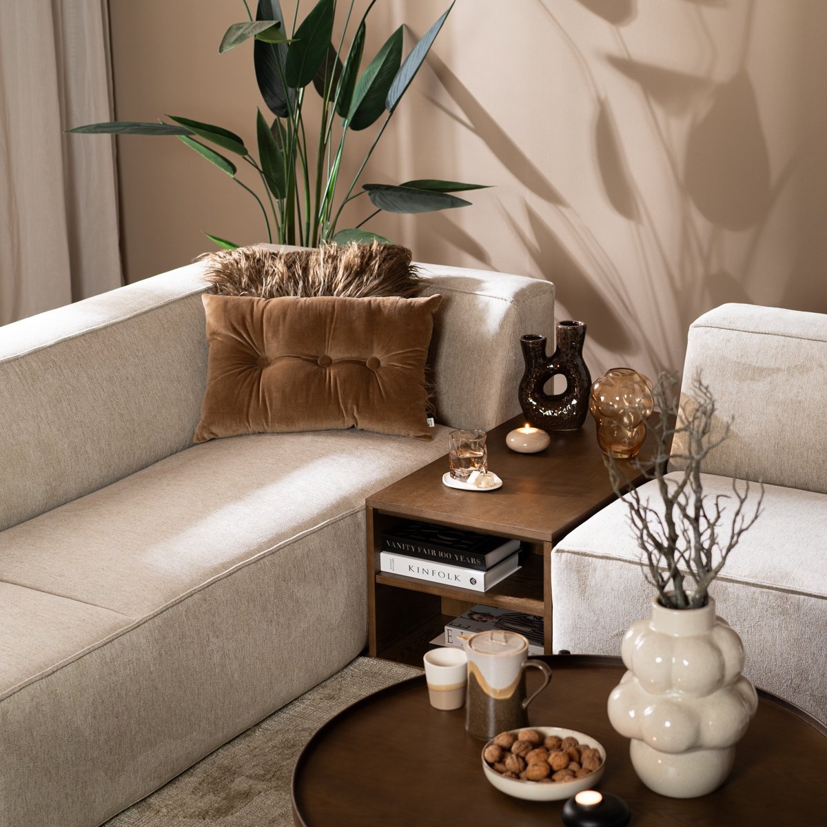 Sidetable Jaxx kan op meerdere manieren worden gebruikt. Plaats hem tussen de banken als een handig element om bijvoorbeeld een lamp of een glazen op te zetten. Of gebruik de Jaxx als bijzettafel of koffietafel.