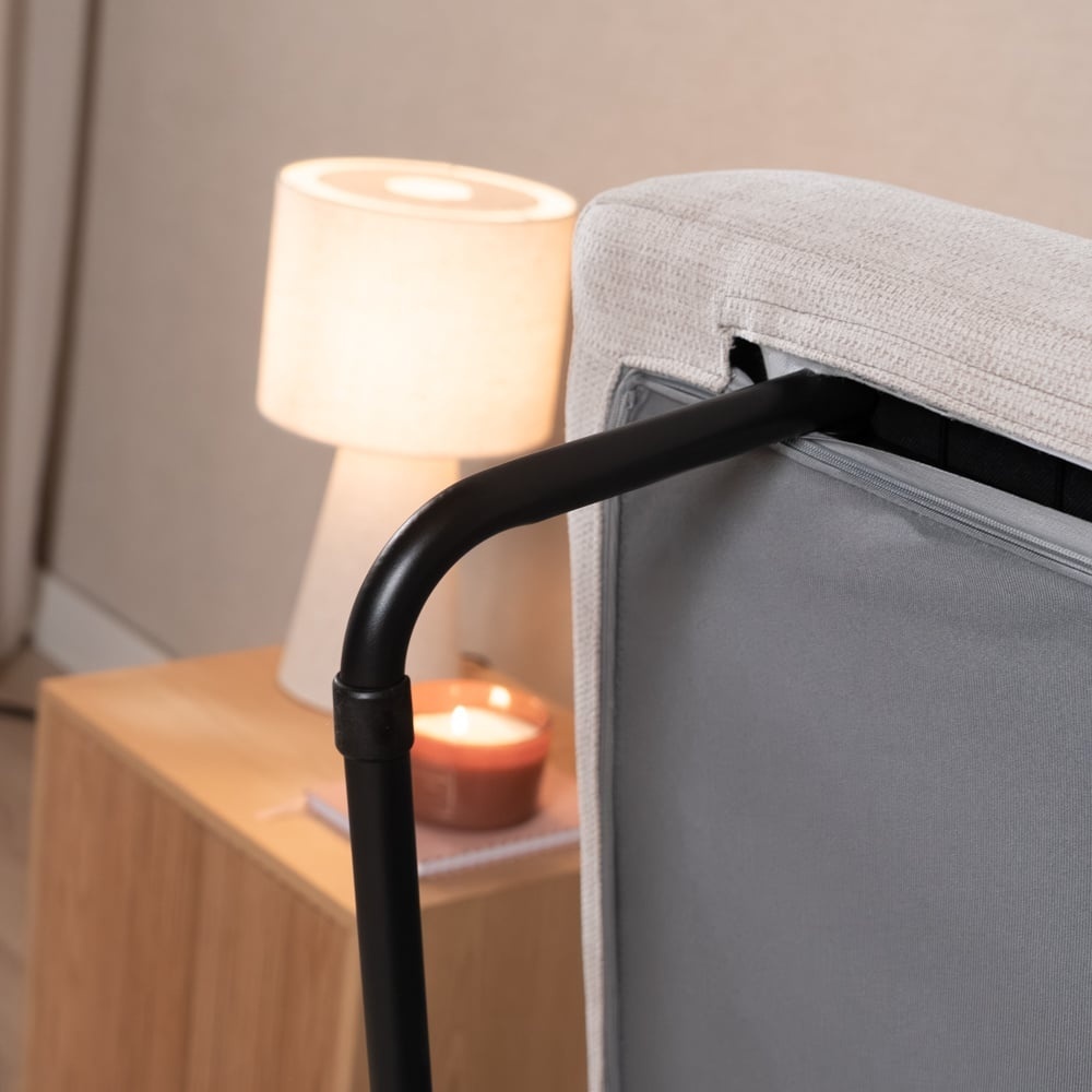 Deze slaapbank is zorgvuldig opgebouwd voor optimaal comfort en duurzaamheid. De zitting en het liggedeelte bestaan uit een kern van 2 cm dik schuim met een dichtheid van 25 kg/m³, aangevuld met een 7 cm dikke laag polyfiber. Deze polyfiber is met de hand in kleine pockets geplaatst voor een gelijkmatige verdeling en extra zachtheid. Daarnaast is de slaapbank voorzien van nosag veren, die zorgen voor een stevige ondersteuning en een lange levensduur.