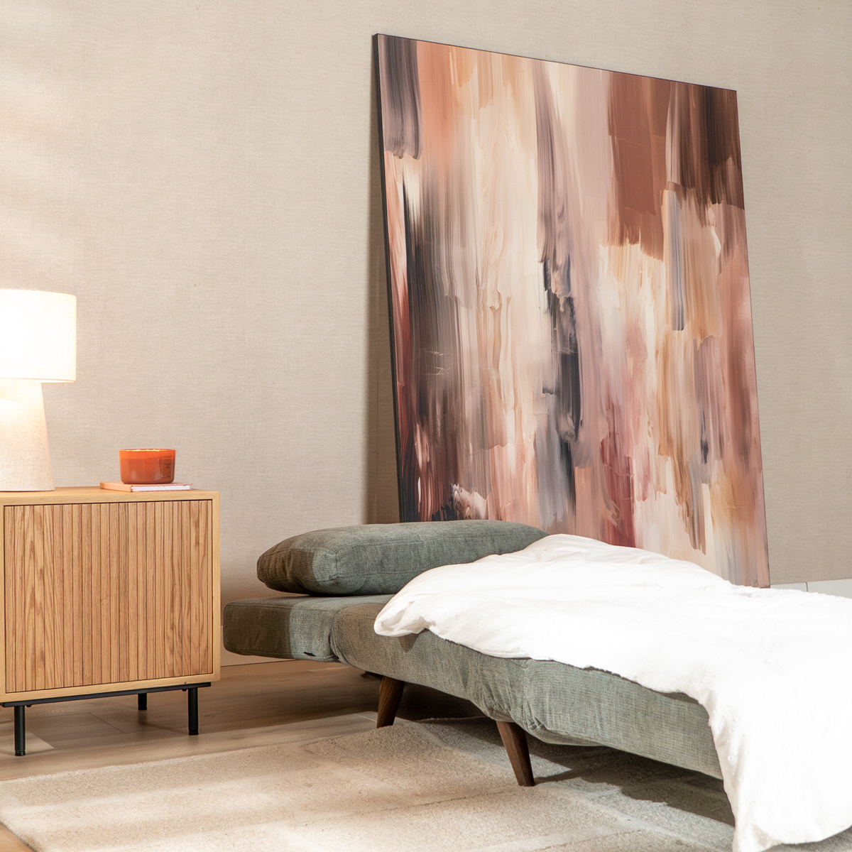 De slaapbank is gemaakt van een 100% gerecyclede stof. De stof is een duurzame polyester stof gemaakt van plastic flessen en daardoor erg milieuvriendelijk. De stof is net zo sterk, veerkrachtig en slijtvast als normaal polyester. Daarnaast is de stof licht waterafstotend, wat ideaal is in het onderhoud. Deze slaapbank is zorgvuldig opgebouwd voor optimaal comfort en duurzaamheid. De zitting en het liggedeelte bestaan uit een kern van 2 cm dik schuim met een dichtheid van 25 kg/m³, aangevuld met een 7 cm dikke laag polyfiber. Deze polyfiber is met de hand in kleine pockets geplaatst voor een gelijkmatige verdeling en extra zachtheid. Daarnaast is de slaapbank voorzien van nosag veren, die zorgen voor een stevige ondersteuning en een lange levensduur.