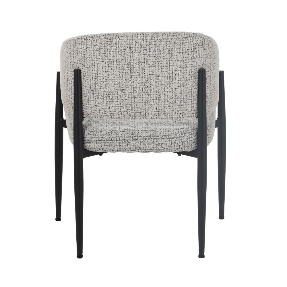 De eetkamerstoel is bekleed met een gemêleerde stof die bestaat uit 100% polyester. De stof is niet waterafstotend maar goed te onderhouden met de texiel care & clean kit. Door de kleur en de stof zijn vlekken minder snel zichtbaar.