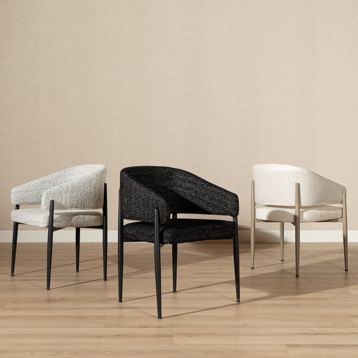 Stoel Armin combineert comfort en stijl met zijn gemêleerde bekleding en strak vormgegeven armleuningen. De slanke, vaste armleuningen geven de stoel een krachtige uitstraling en bieden fijne ondersteuning tijdens overleggen of werkmomenten.