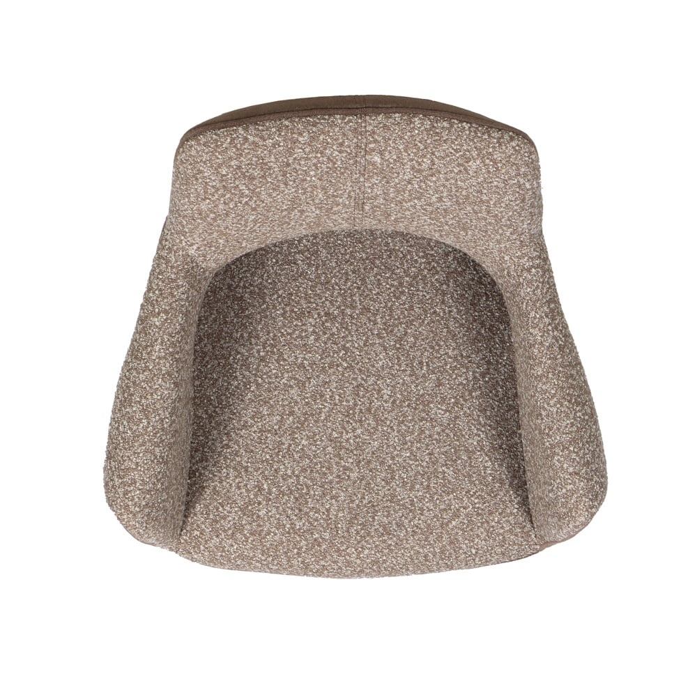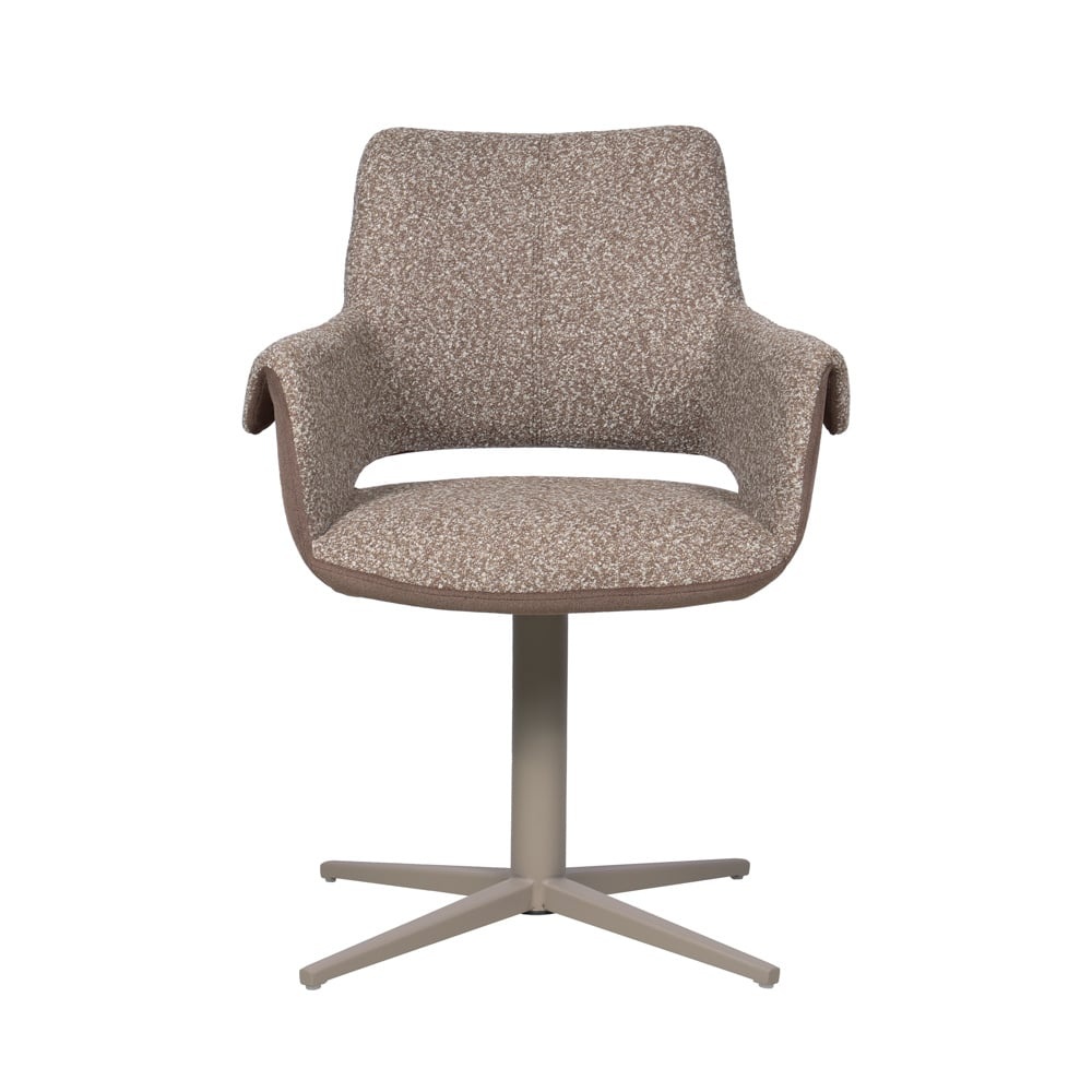De stoel is bekleed met een extra slijtvaste bouclé stof met gemêleerde structuur en beschikt over een Martindale score van 40.000. Dit betekent dat de stof sterk genoeg is voor dagelijks intensief gebruik in commerciële ruimten, zonder snel tekenen van slijtage te vertonen. Het onderhoud is eenvoudig: losse vlekken verwijder je snel met een licht vochtige doek en voor extra bescherming van de stof adviseren wij gebruik te maken van een Textiel Care Kit. De constructie van de ijzeren poot en de comfortabele arm- en rugleuning zorgen voor een degelijke zitervaring, ook bij langdurig gebruik.