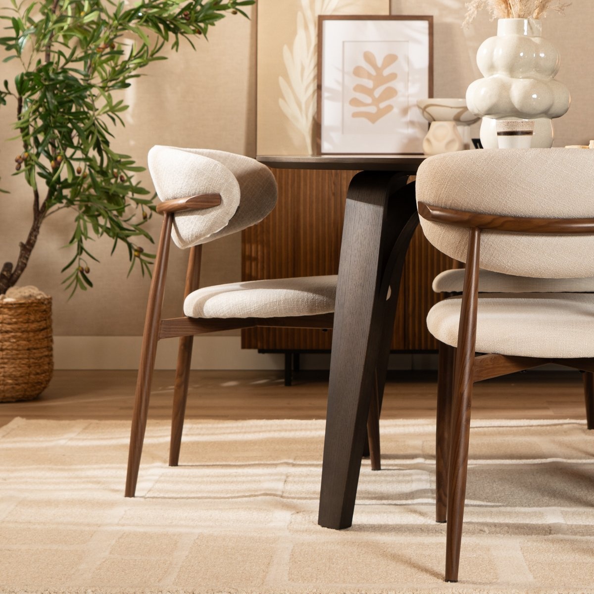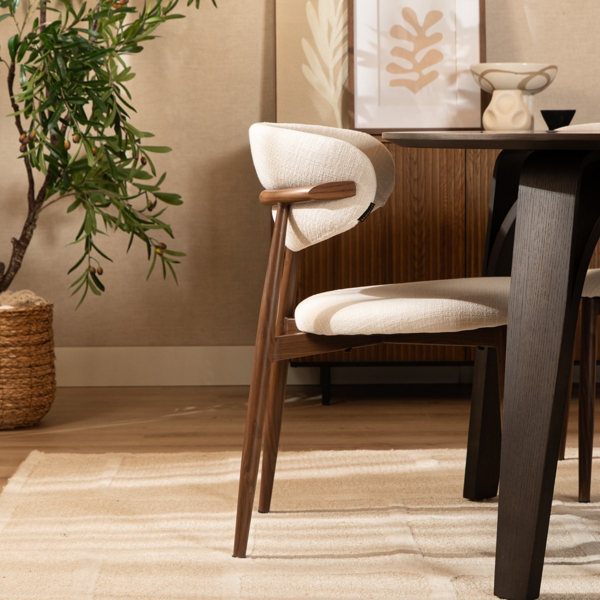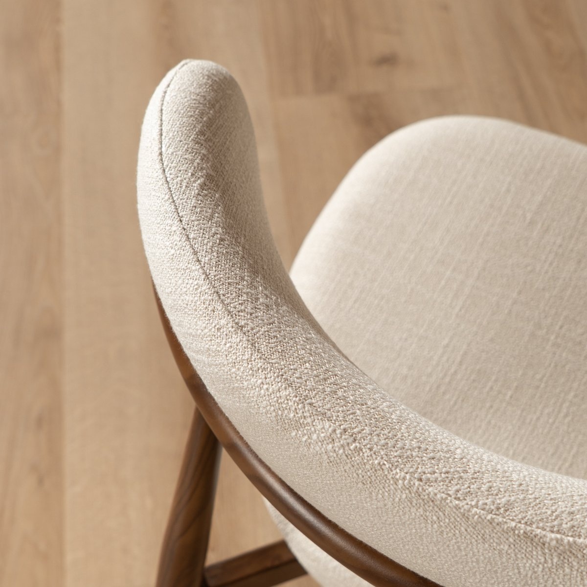 Maak kennis met stoel Lara Linnen Off White – een verfijnde mix van modern design, zachte lijnen en praktische details. De stoel is bekleed met een water- en vuilafstotende linnenmix (85% polyester, 15% linnen) in een frisse off white kleur.