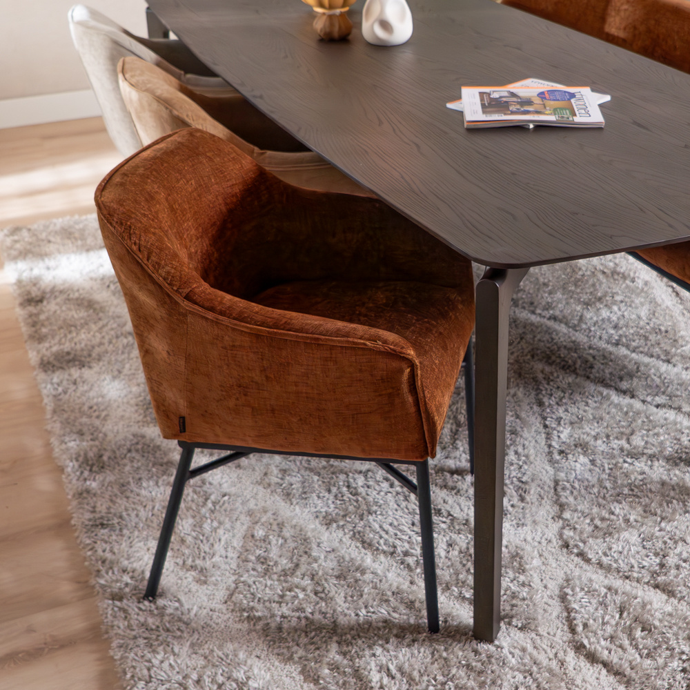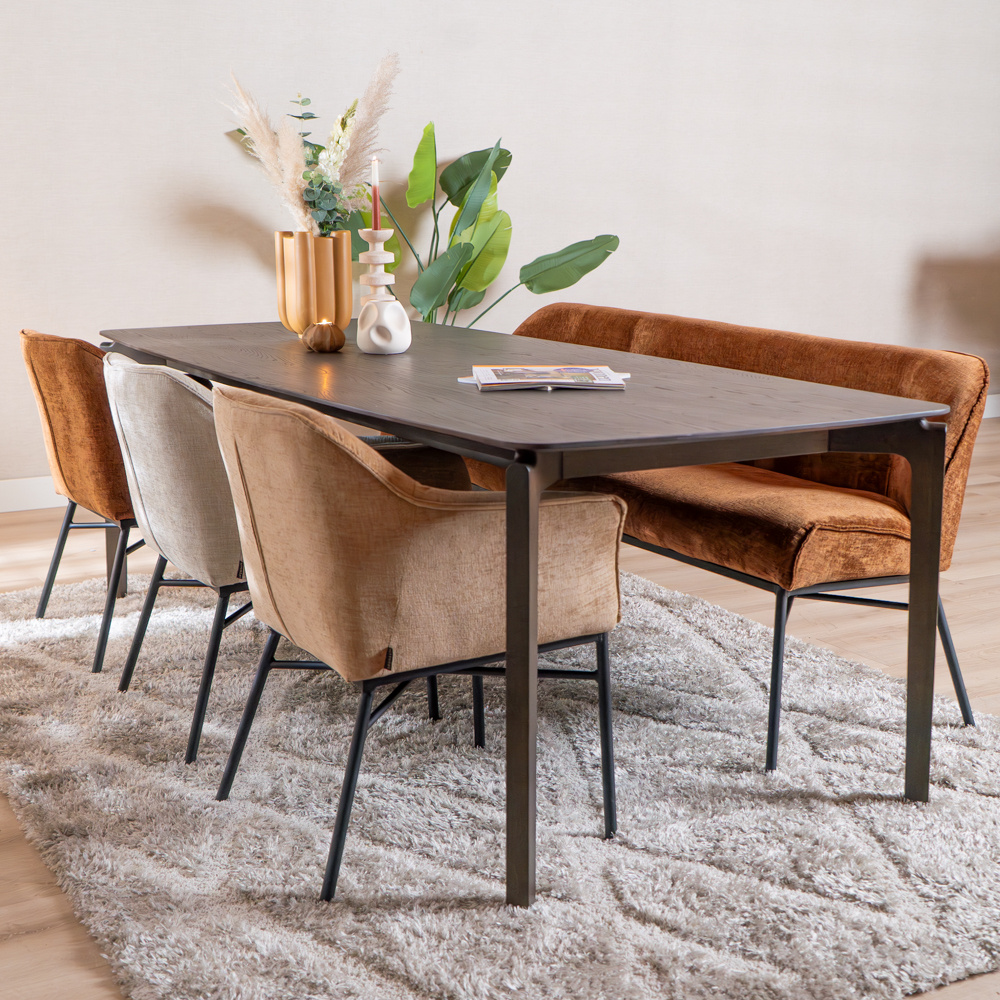 De stoel heeft een extra verstevigd metalen onderstel en is bekleed met duurzame chenille die waterafstotend is. De plek blijft fris en netjes, onderhoud verloopt eenvoudig door regelmatig te reinigen met een vochtige doek of een textiel care kit. De Eddy stof is een comfortabele chenille stof van 100% polyester. Deze stof heeft een Martindale score van 60.000, wat betekent dat de bank zeer slijtvast is en geschikt voor intensief gebruik. De stof voelt zacht aan en heeft een luxe uitstraling, wat bijdraagt aan het comfortabele zitgevoel.