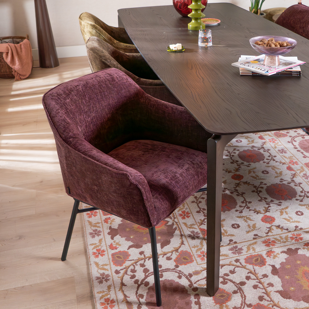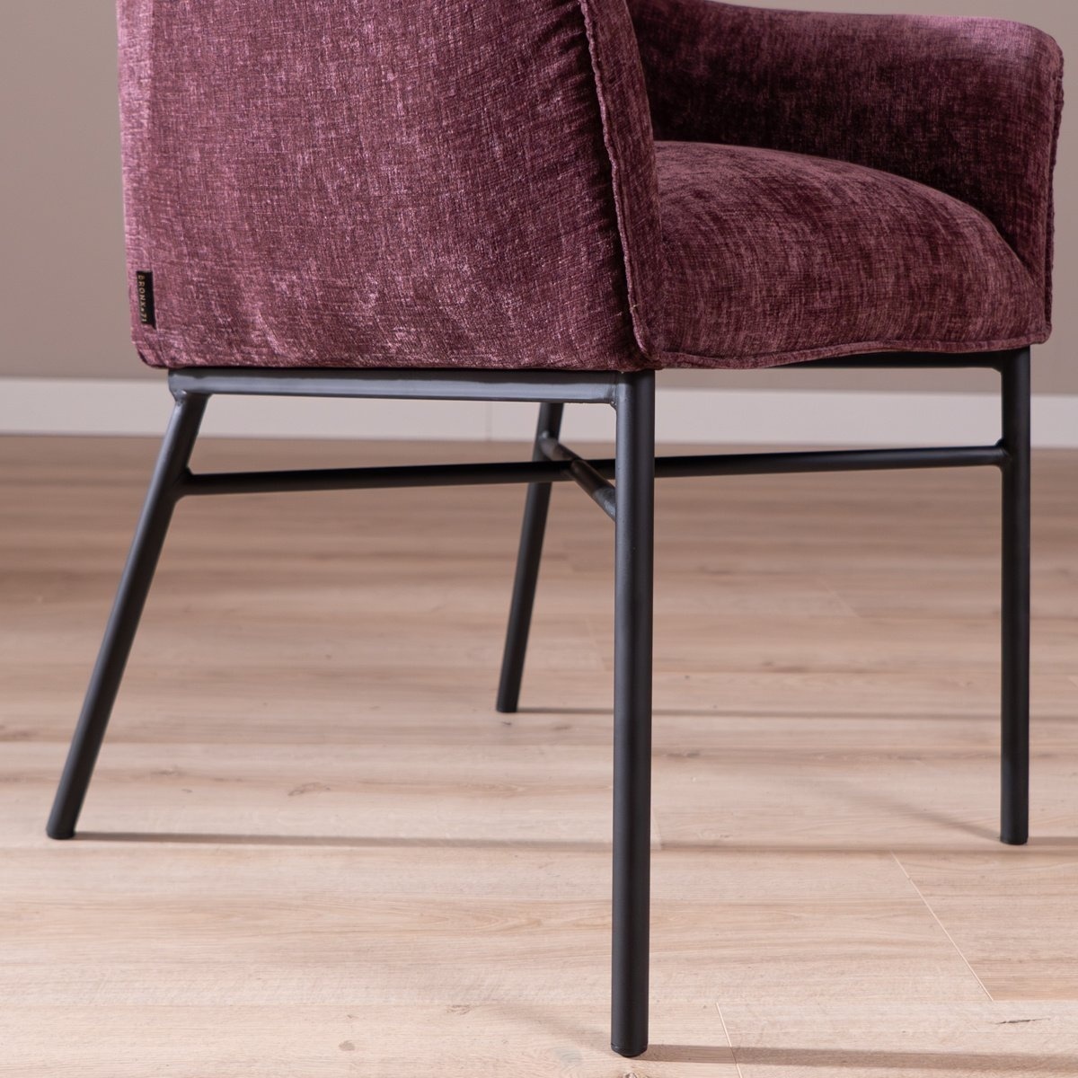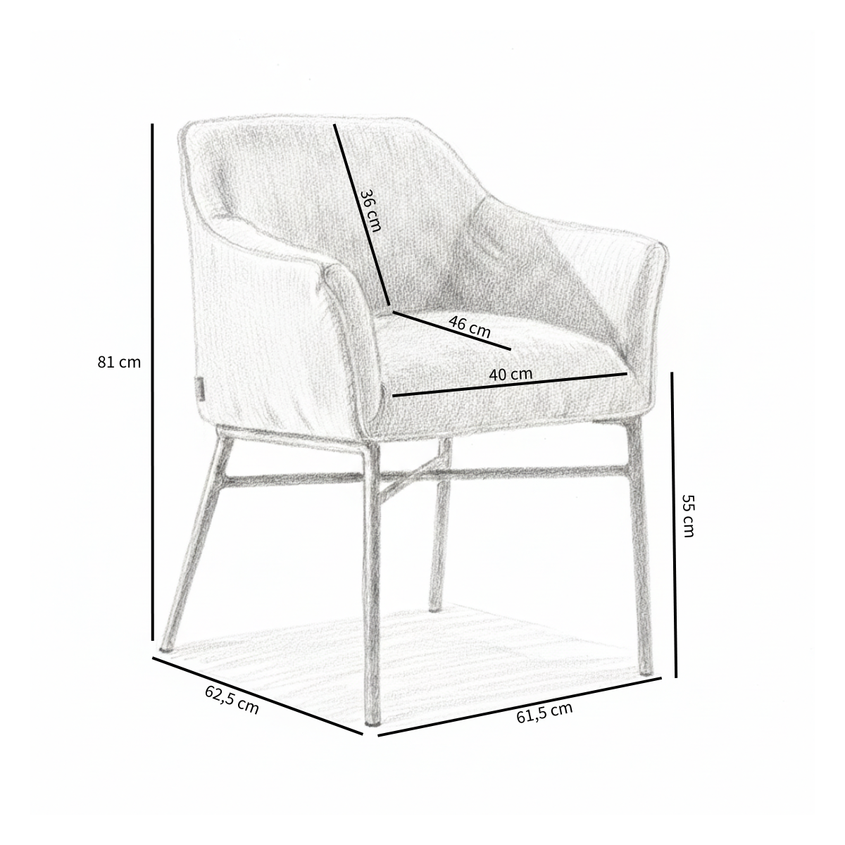 De stoel heeft een extra verstevigd metalen onderstel en is bekleed met duurzame chenille die waterafstotend is. De plek blijft fris en netjes, onderhoud verloopt eenvoudig door regelmatig te reinigen met een vochtige doek of een textiel care kit. De Eddy stof is een comfortabele chenille stof van 100% polyester. Deze stof heeft een Martindale score van 60.000, wat betekent dat de bank zeer slijtvast is en geschikt voor intensief gebruik. De stof voelt zacht aan en heeft een luxe uitstraling, wat bijdraagt aan het comfortabele zitgevoel.