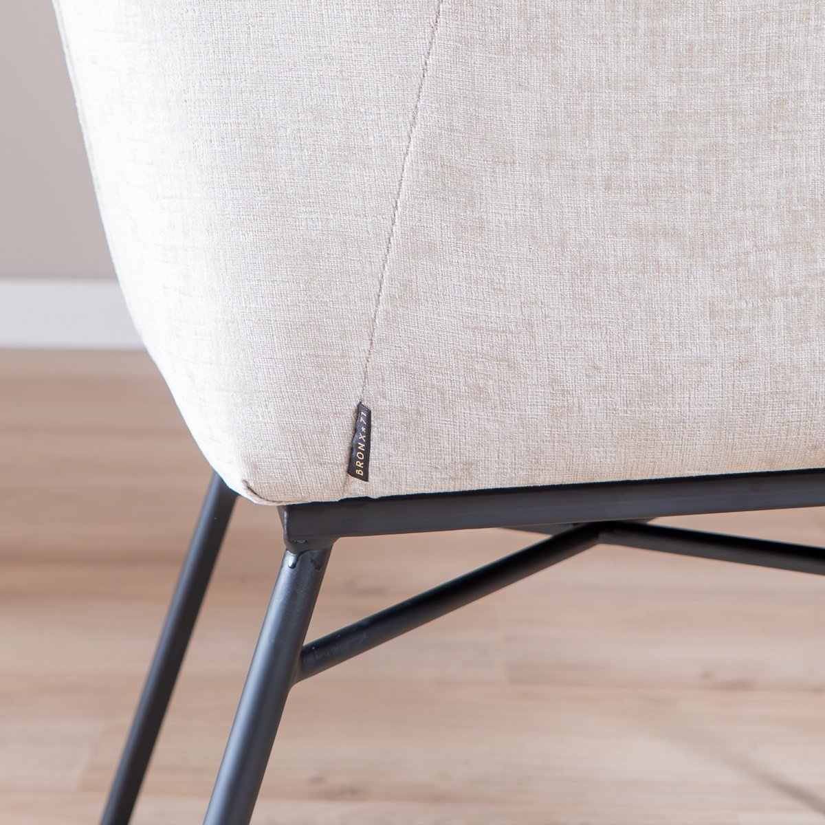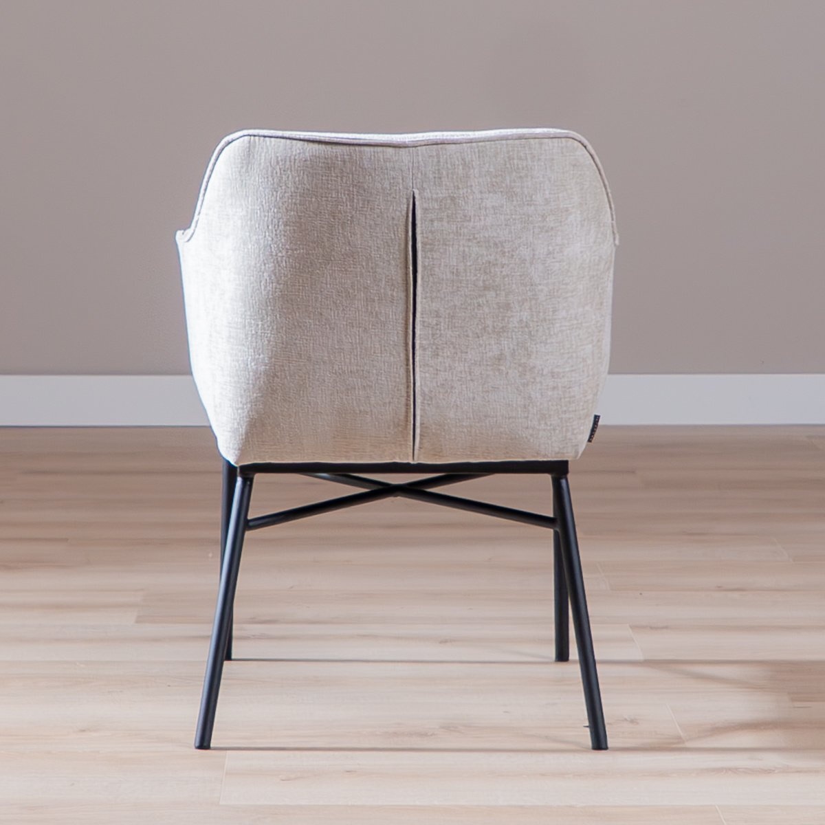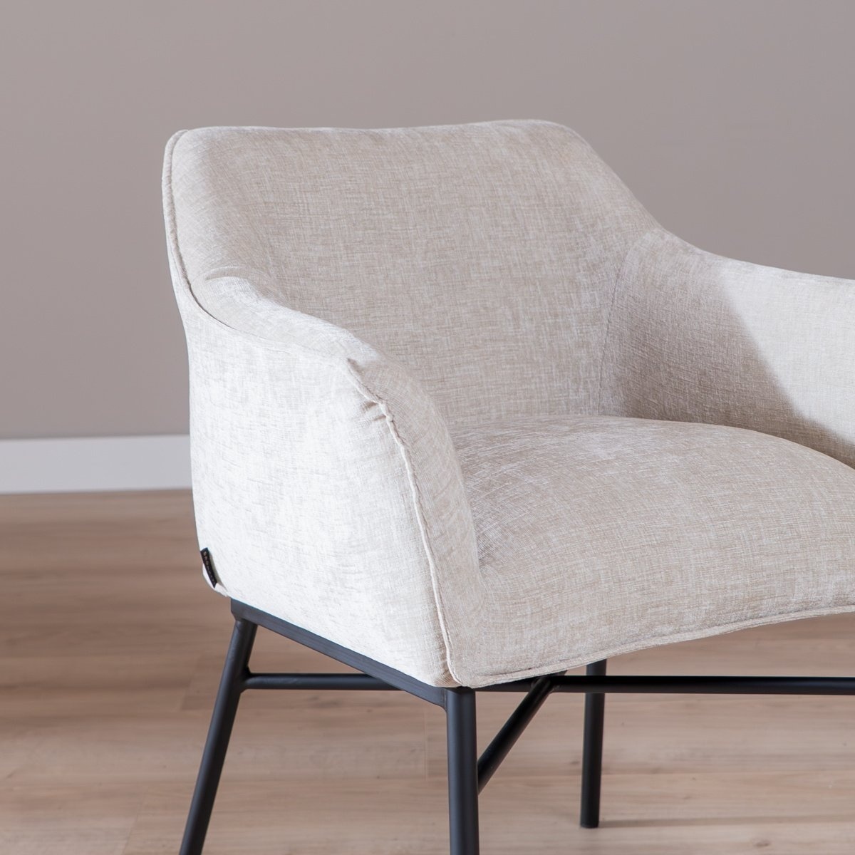 De stoel heeft een extra verstevigd metalen onderstel en is bekleed met duurzame chenille die waterafstotend is. De plek blijft fris en netjes, onderhoud verloopt eenvoudig door regelmatig te reinigen met een vochtige doek of een textiel care kit. De Eddy stof is een comfortabele chenille stof van 100% polyester. Deze stof heeft een Martindale score van 60.000, wat betekent dat de bank zeer slijtvast is en geschikt voor intensief gebruik. De stof voelt zacht aan en heeft een luxe uitstraling, wat bijdraagt aan het comfortabele zitgevoel.