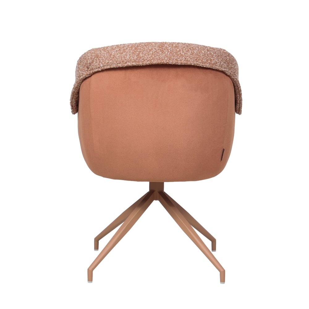 Deze stoel is bekleed met een hoogwaardige bouclé stof met gemêleerde structuur en beschikt over een Martindale score van 40.000. Dit betekent dat de stof uitermate slijtvast is en lang meegaat, zelfs bij frequente belasting. Onderhoud is eenvoudig; vlekken verwijder je met een licht vochtige doek. Voor extra bescherming tegen vlekken en behoud van de stofkwaliteit kun je de Textiel Care Kit gebruiken.