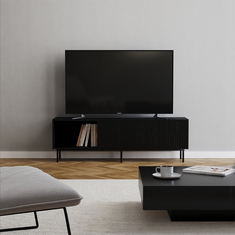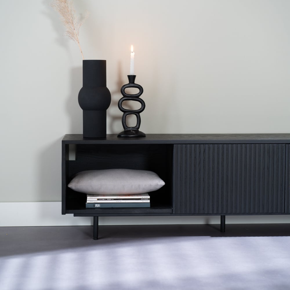 Het Ray tv-meubel van 150 cm is een stijlvolle tv-kast met genoeg ruimte om spullen netjes in op te bergen. Het tv-dressoir kan zowel hangend aan de muur als staand gebruikt worden.