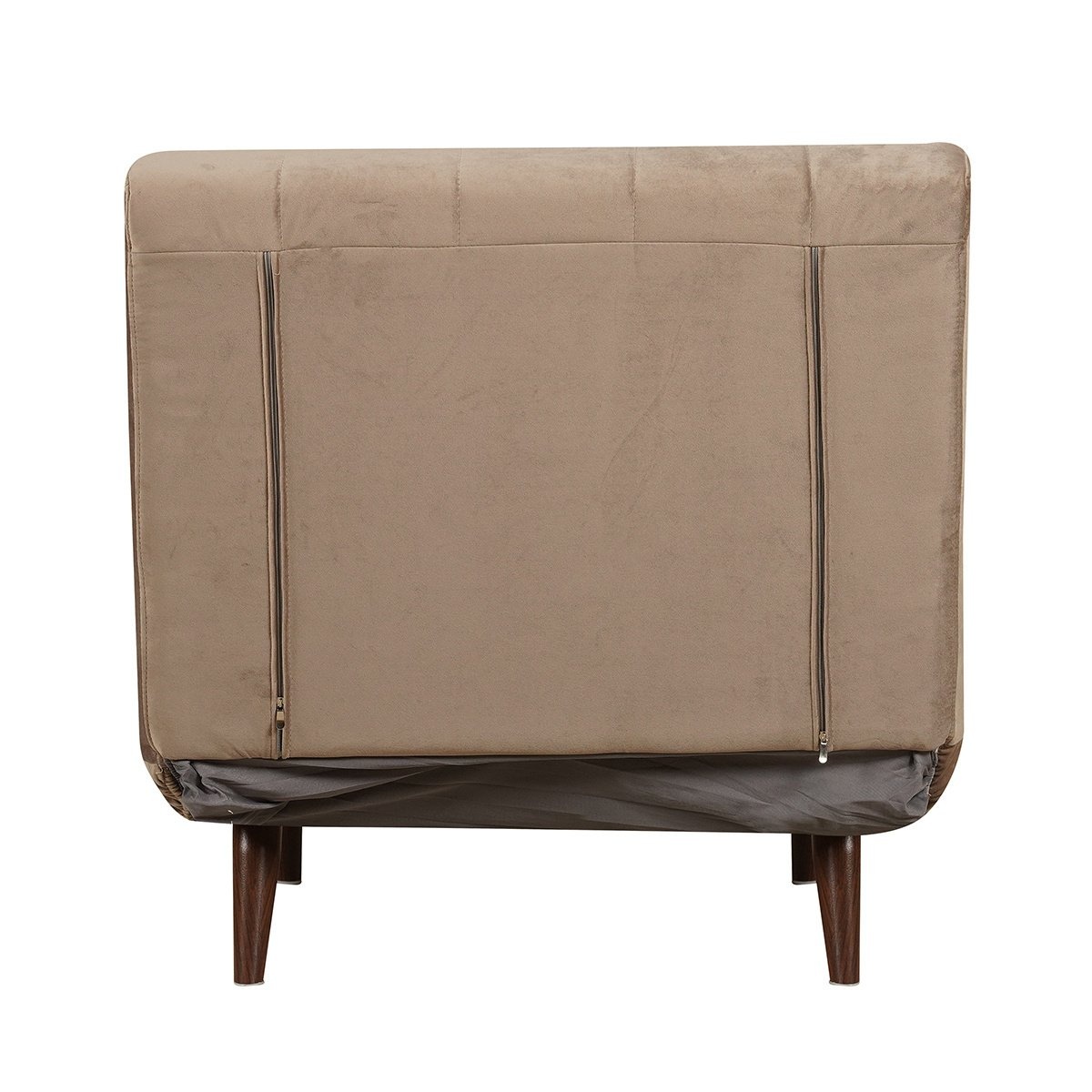 Wanneer u de fauteuil wilt gebruiken als bed, kunt u de armleuningen en rugleuning naar beneden klappen. Uit de rugleuning komt een extra set poten te voorschijn door middel van een rits, op deze manier verandert u de bank gemakkelijk in een bed. Deze slaapfauteuil is geschikt voor 1 persoon.